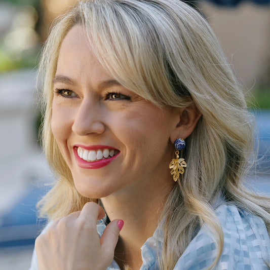 Susan Shaw - Blue & White Porcelain Leaf Earrings
