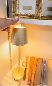 Two's Company-LED Cordless Table Lamp with Scalloped Edge Gold Shade